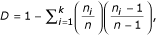 where n is the number of sequences, k the number of distinct haplotypes, and ni number of sequences with one distinct haplotype.